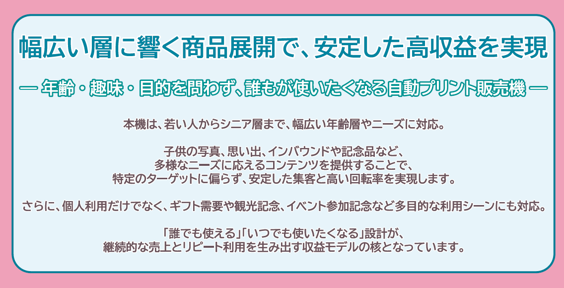 | 業務内容 | ・スマートフォン関連商品の企画、製造、販売及びに通信販売事業 ・自動販売機の企画、製造、販売、設置、保守及び関連商品の販売 |