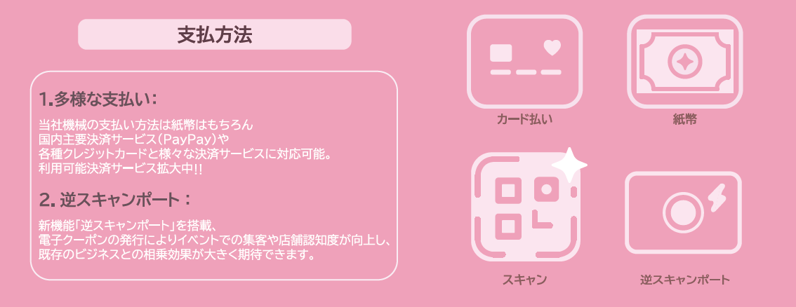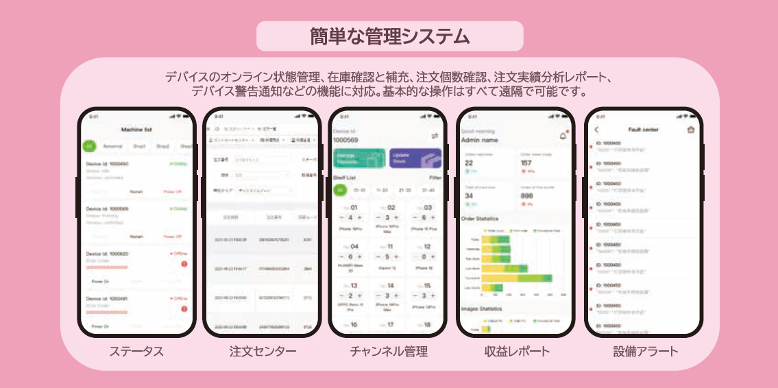 | 業務内容 | ・スマートフォン関連商品の企画、製造、販売及びに通信販売事業 ・自動販売機の企画、製造、販売、設置、保守及び関連商品の販売 |